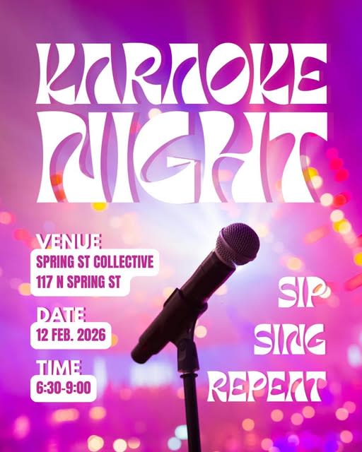 Make your plans now to join us this Thursday at the Spring Street collective for karaoke night. We didn’t get to host in January due to the freeze. But the weather this Thursday is looking to be glorious. So come join us Thursday evening for some big fun.