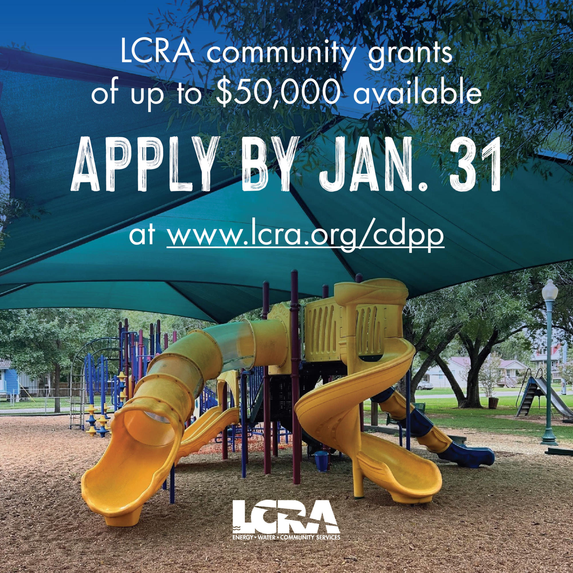 LCRA Community Grants now open. Apply by January 31st, up to $50,000 available. www.lcra.org/cdpp