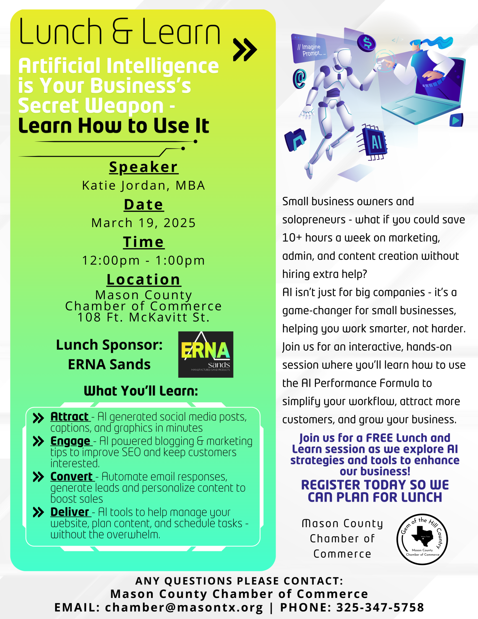Join us for a FREE Lunch and Learn session as we explore AI strategies and tools to enhance our business!
