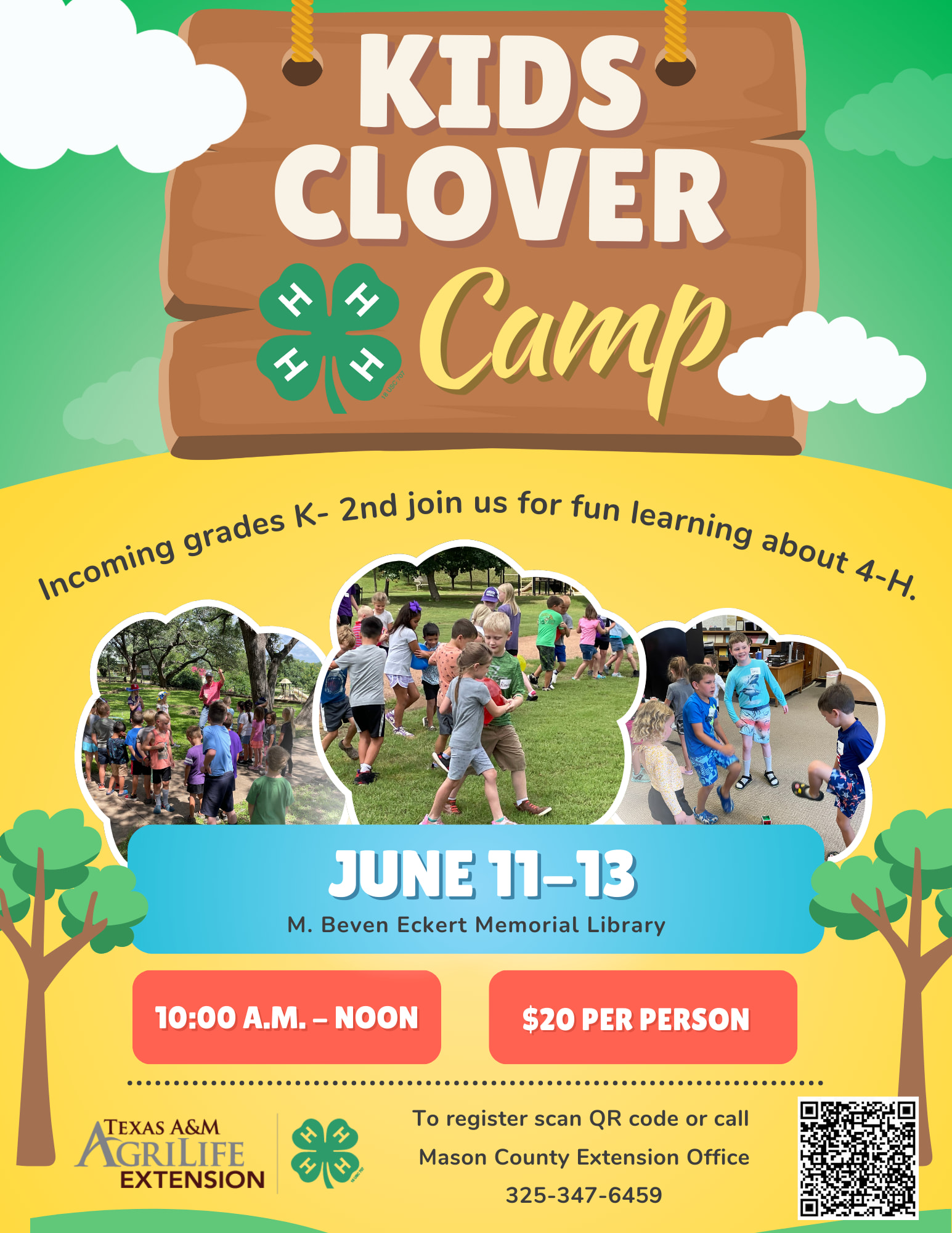 The Texas A&M AgriLife Extension Office will host Clover Camp at the library again this year on June 11-13 from 10:00-12:00. Please contact the extension office for more information on Clover Camp and to register your child for this camp.