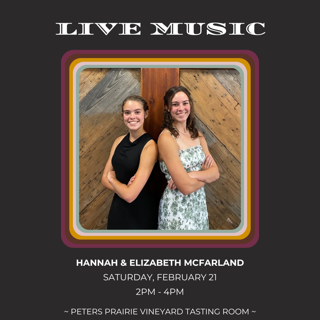 There’s no better way to spend a Saturday than with live music from Elizabeth & Hannah McFarland and a glass of your favorite wine!
