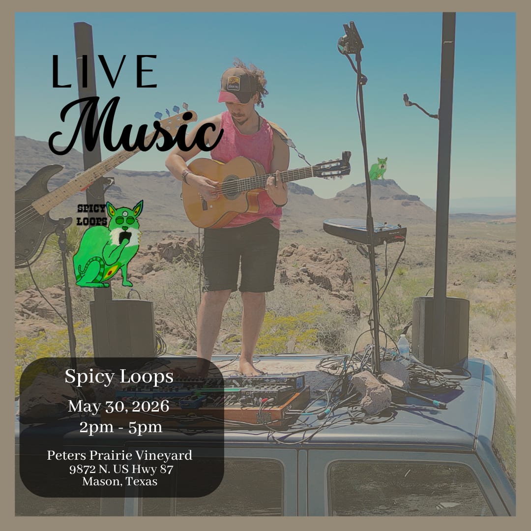 Ease into the weekend with live music from Spicyloops and a glass of our finest Texas wine.