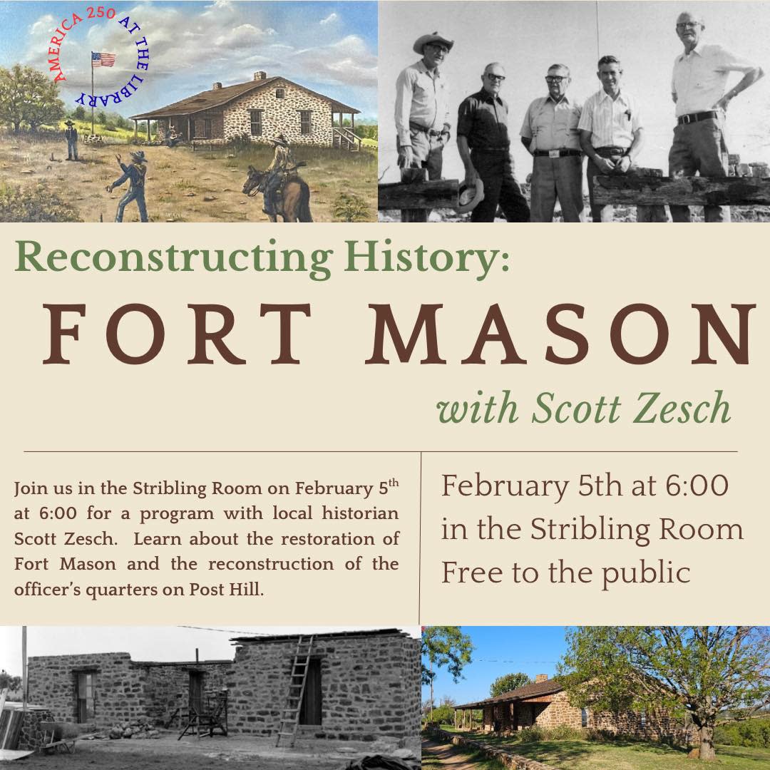 Join us in the Stribling Room of the library for this free program! Learn about the restoration of Fort Mason and the reconstruction of office headquarters on Post Hill.