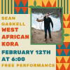 Join us Wednesday at 6:00 at the library for a performance from West African Kora player Sean Gaskell. This program is free to the public!