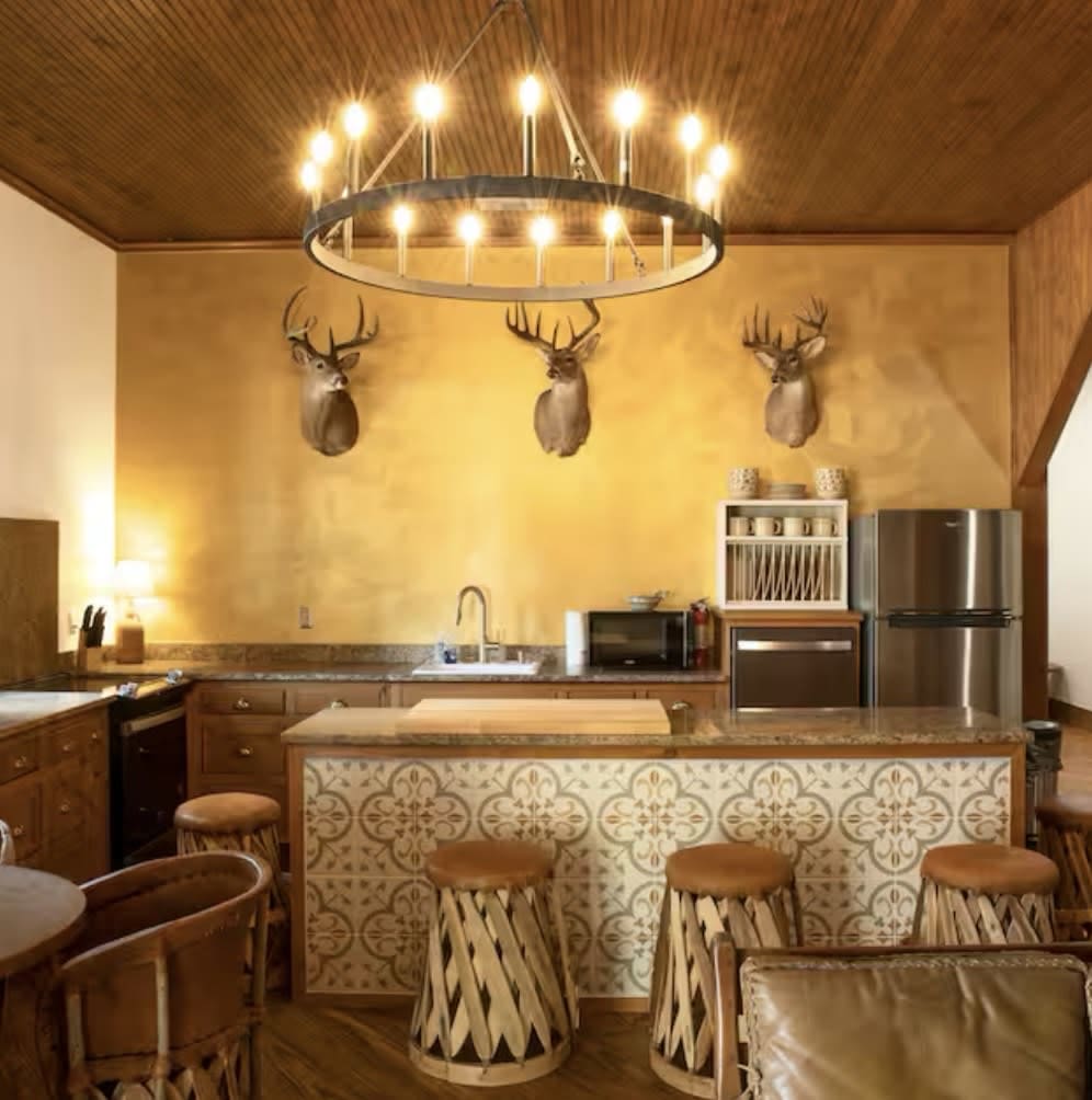 Lea Lou Lodge interior is designed after Mason Texas influences. First American Indians, Spanish Explorers, Mexico, Texans and cattle Barron’s. A block away from the beautiful square of Mason, we offer this 5 bedroom lodge, with shared spaces perfect for a group getaway.